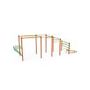Veľká zostava s horizontálnymi hrazdami rôznych výšok, vertikálnymi hrazdami, bradlami, horizontálnym rebríkom je doplnená hrazdou s guľami, multi úchopovou hrazdou a lavičkou ľah-sed.